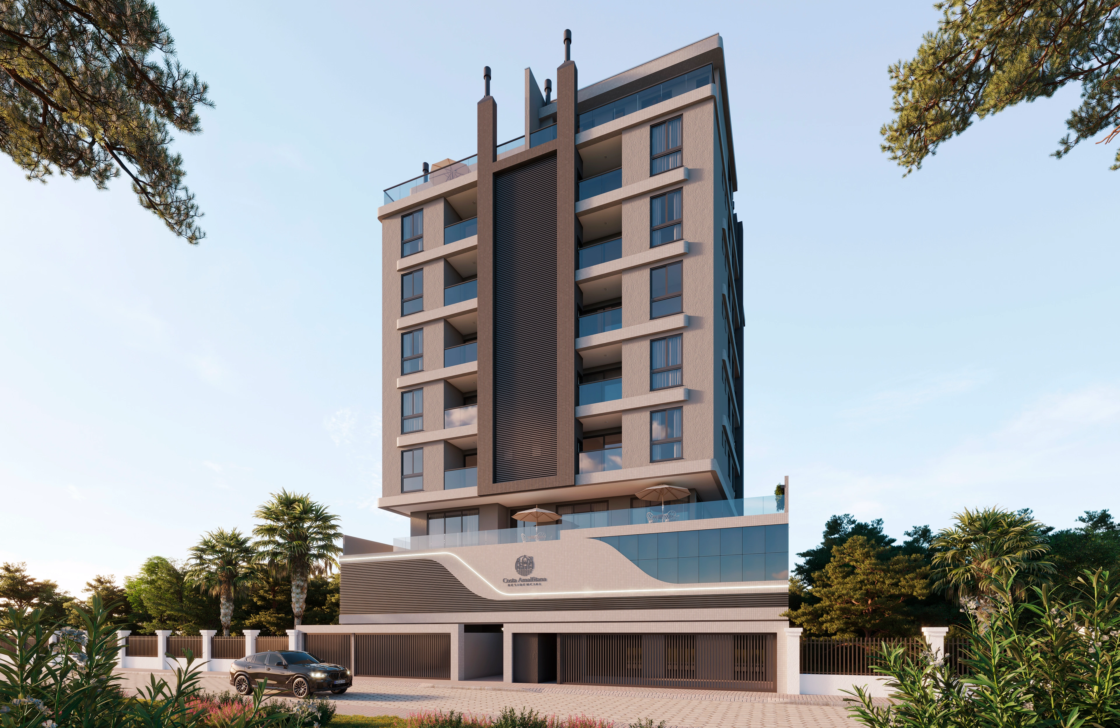 Fachada com acabamentos contemporâneos