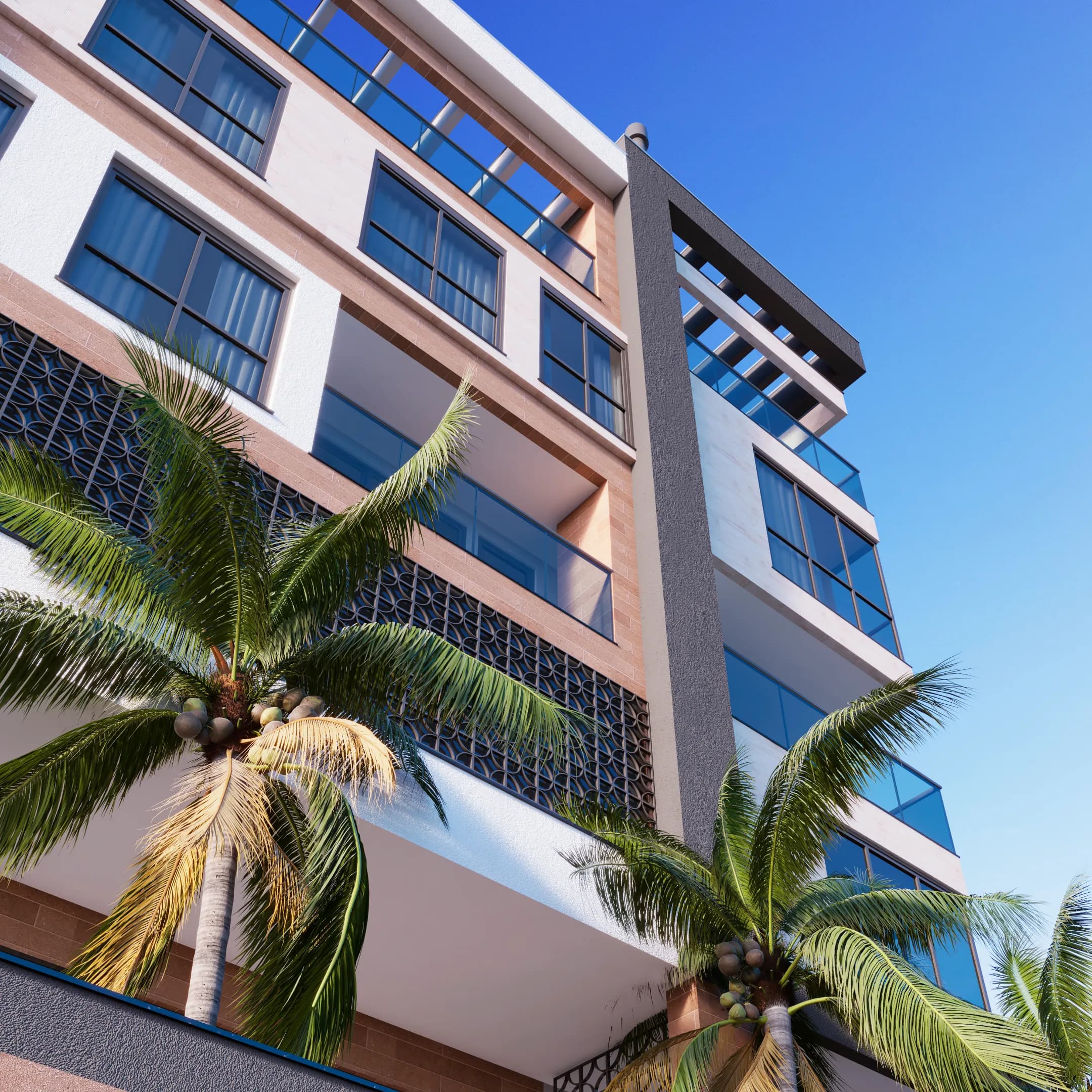 Fachada com acabamentos contemporâneos